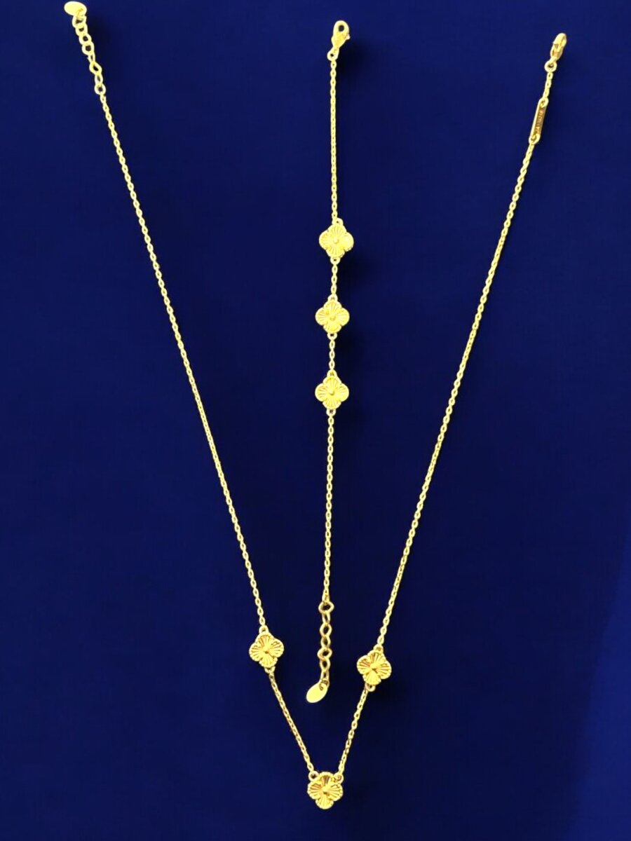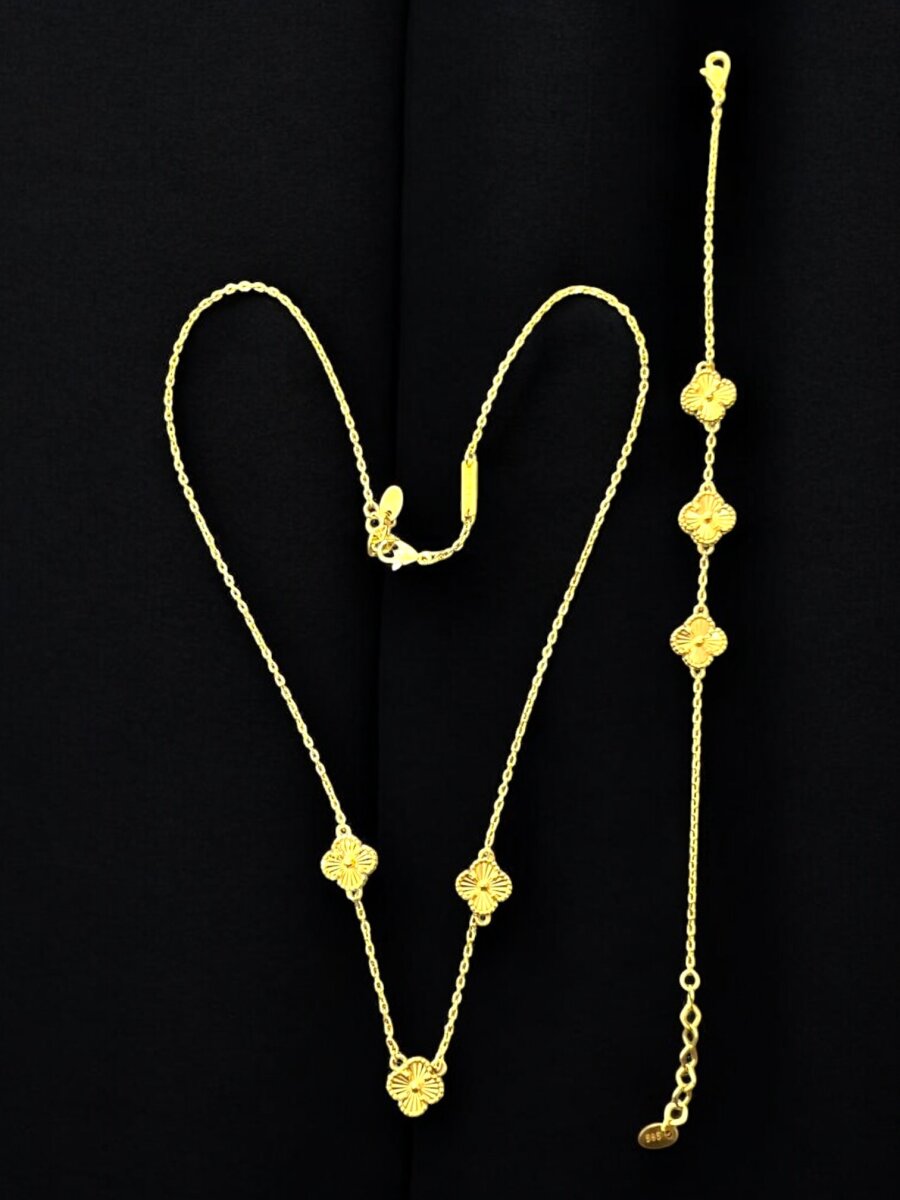 14 Ayar Altın Yonca Kolye ve Bileklik Set
