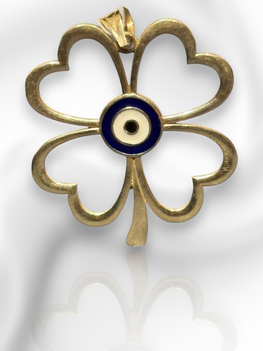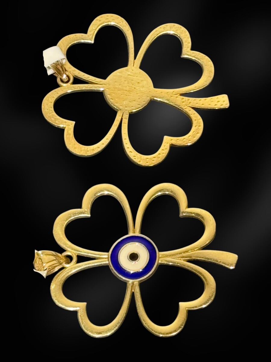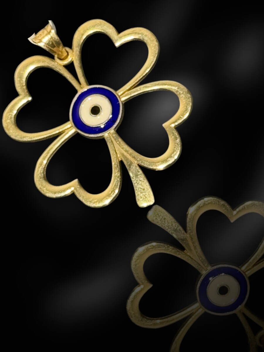 14 Ayar Nazar Boncuğu Figürlü Yonca Kolye Ucu
