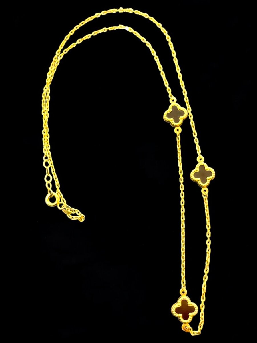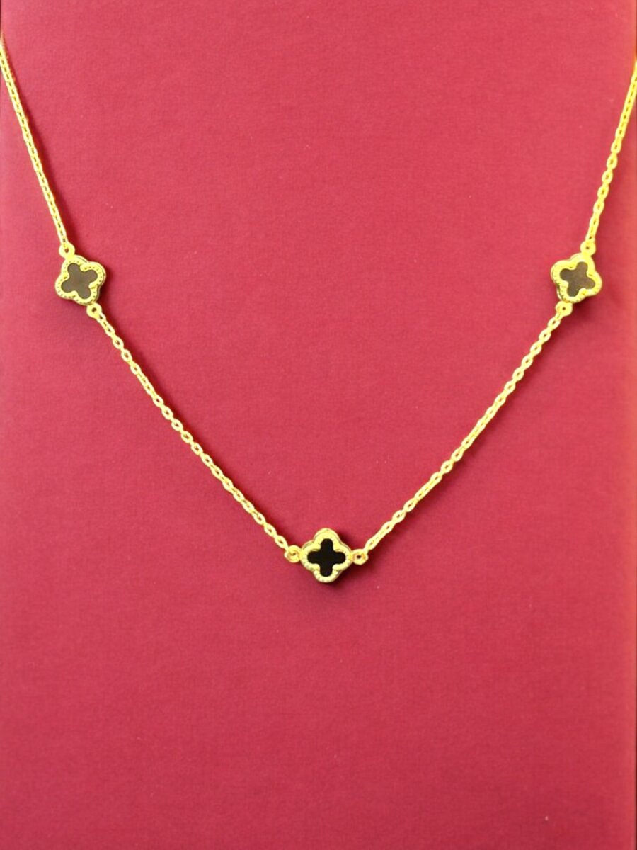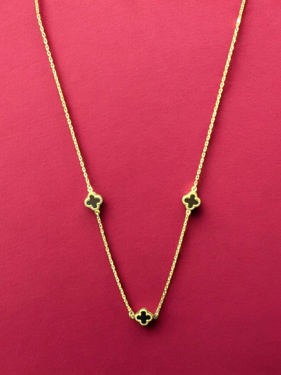 Altın Yonca Model Siyah Renk Kolye