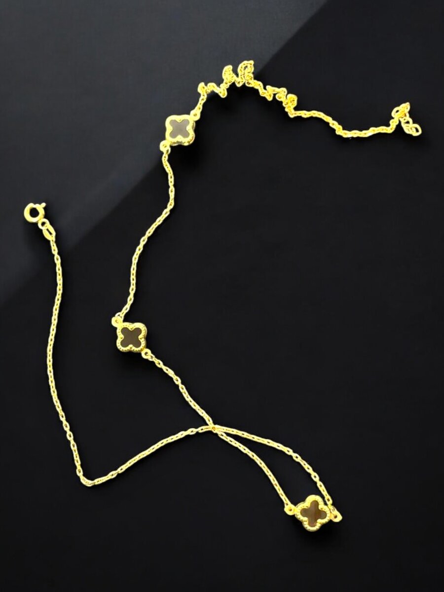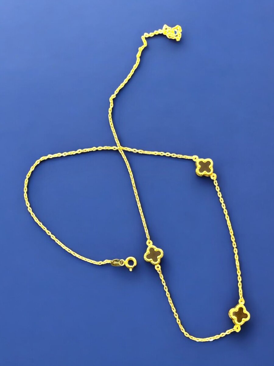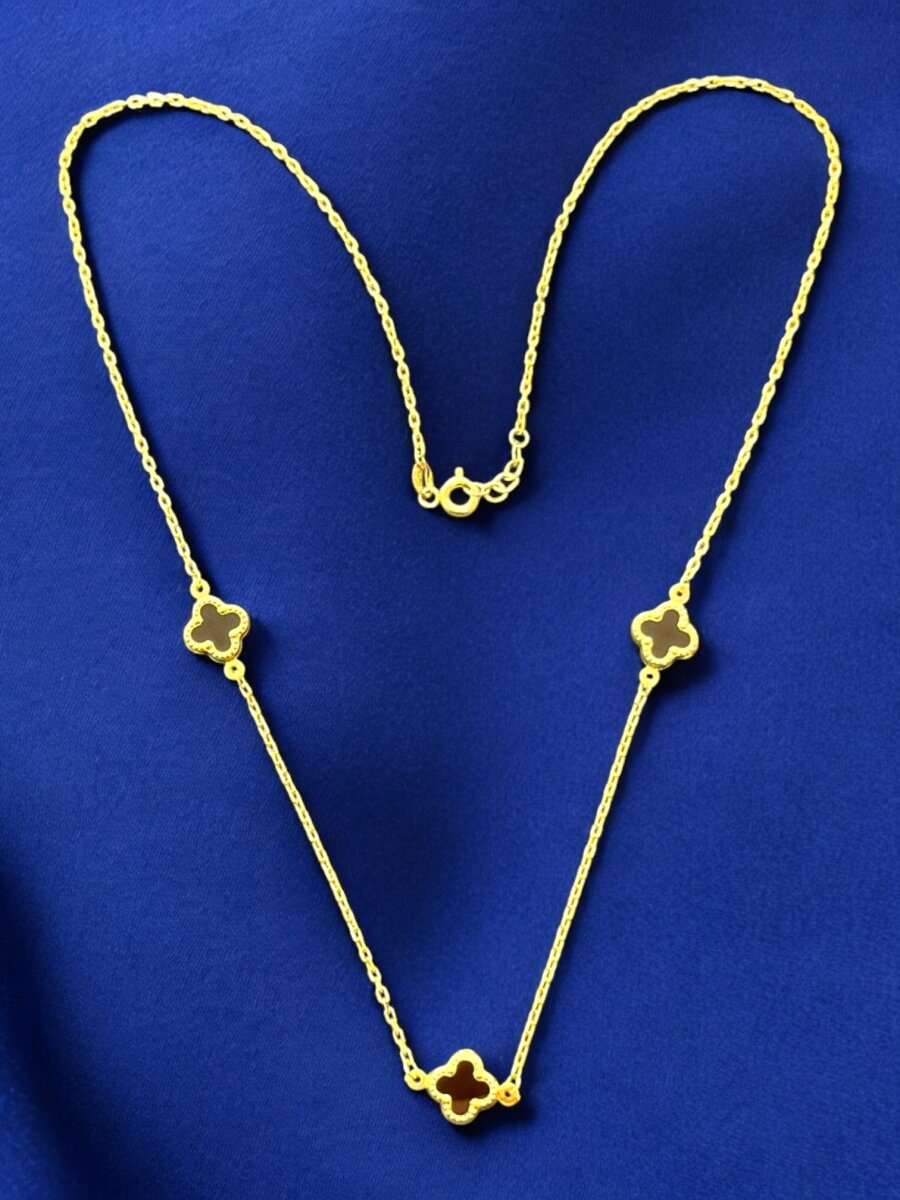 Altın Yonca Model Siyah Renk Kolye