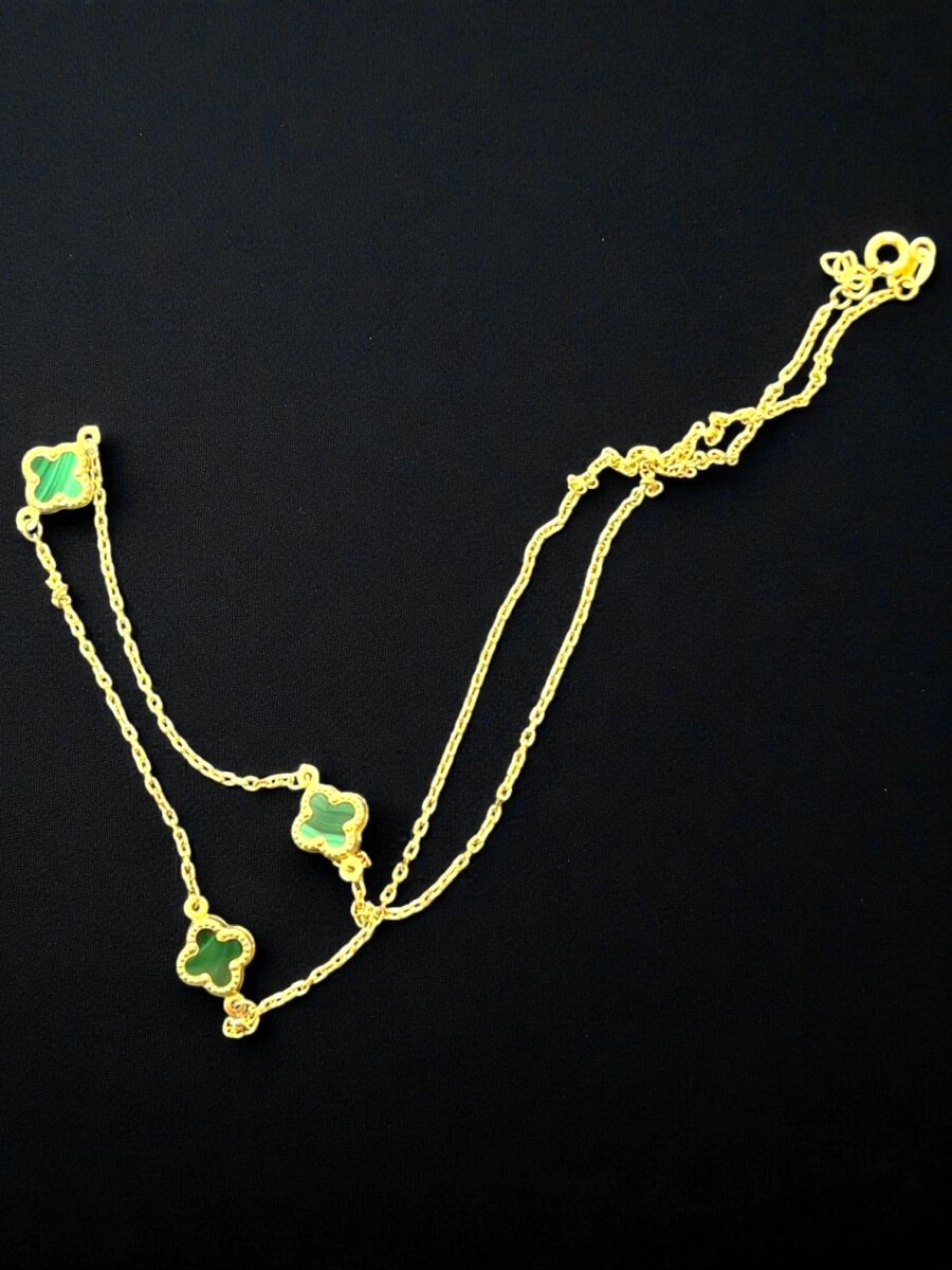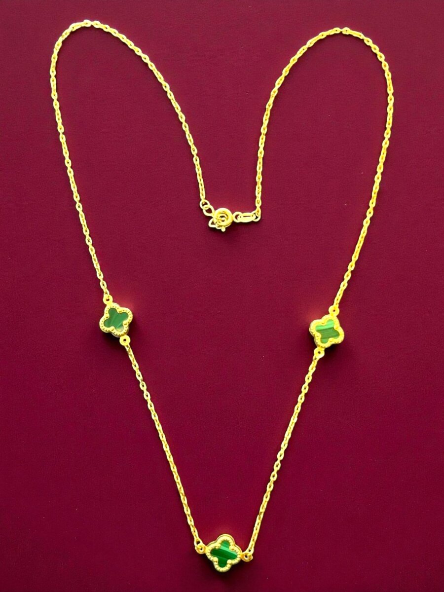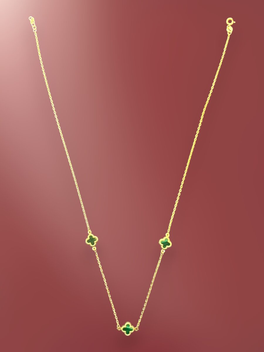 Altın Yonca Model Yeşil Renk Kolye