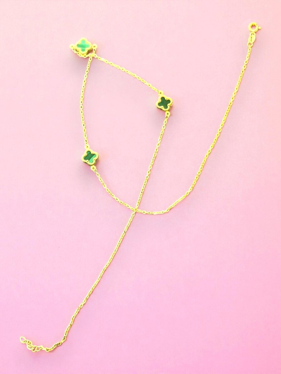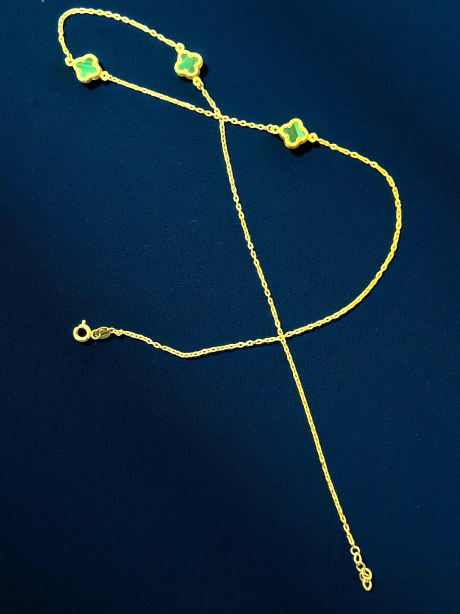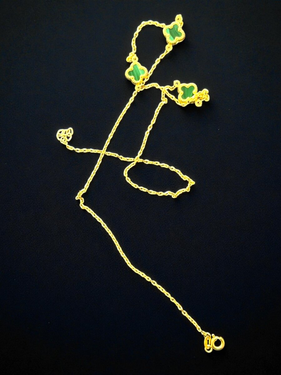 Altın Yonca Model Yeşil Renk Kolye