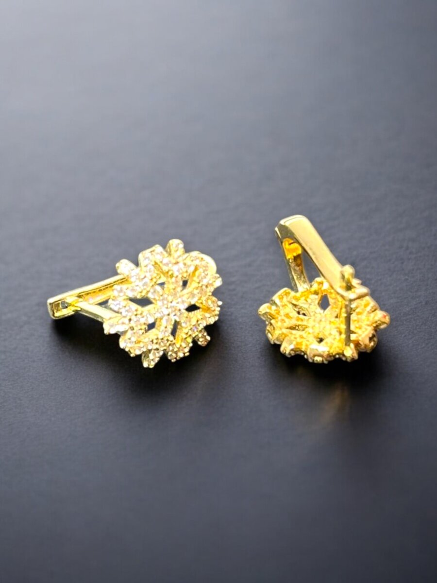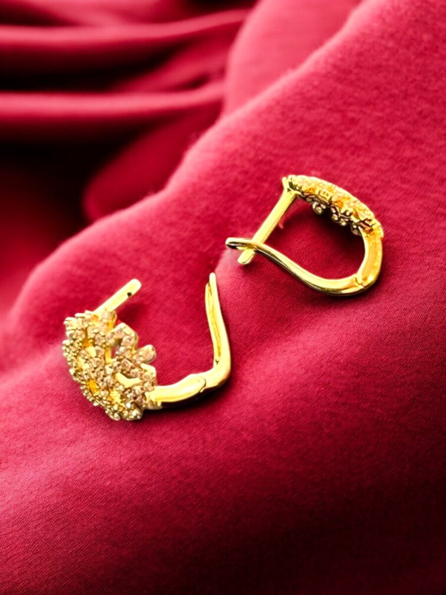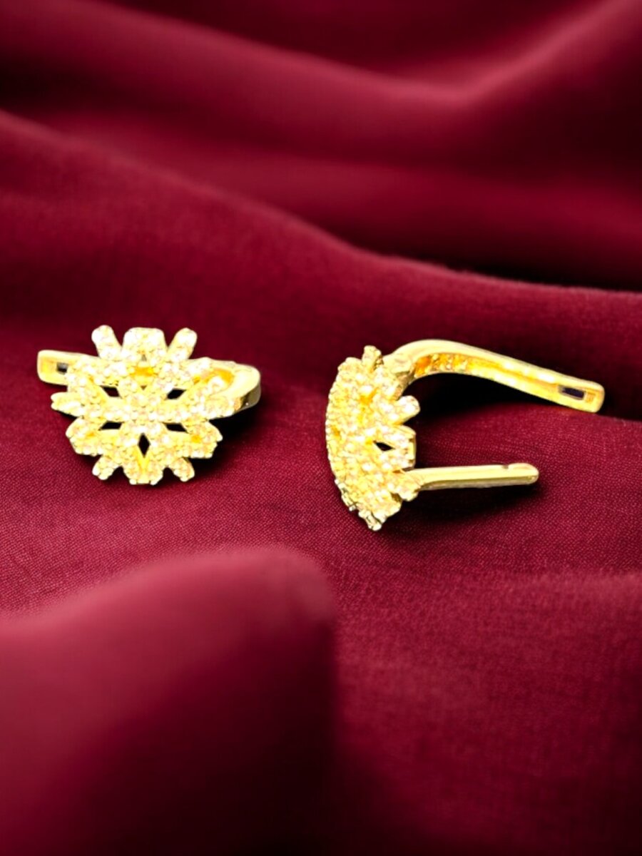 Kar Tanesi Model Taşlı Altın Küpe
