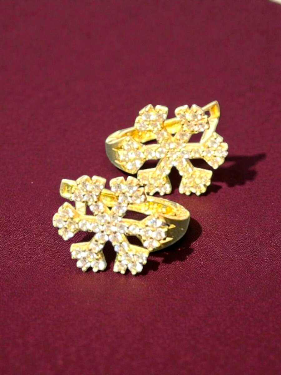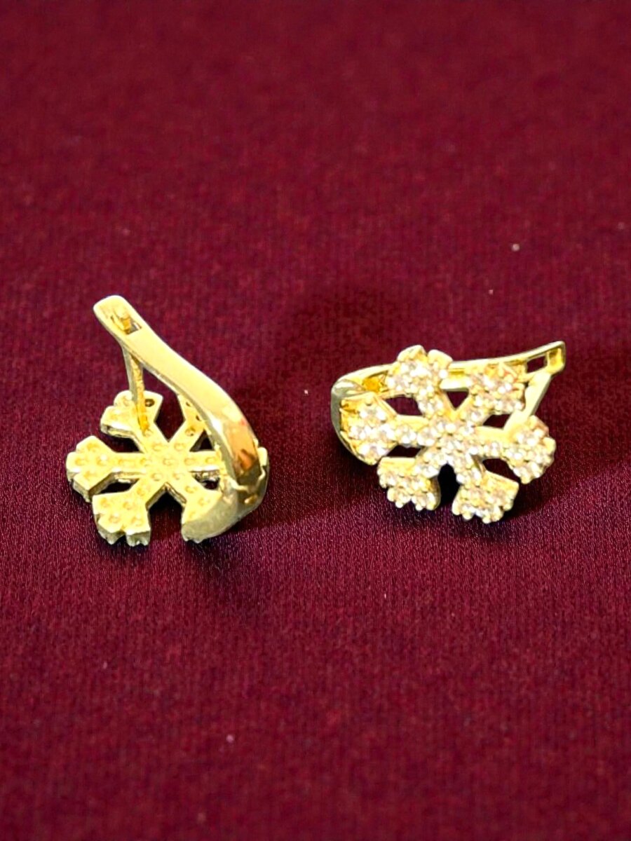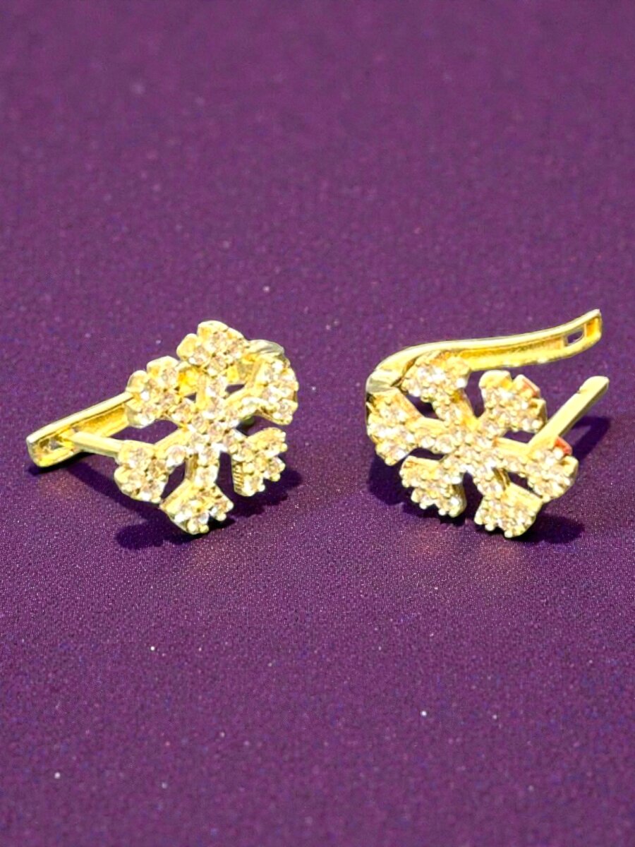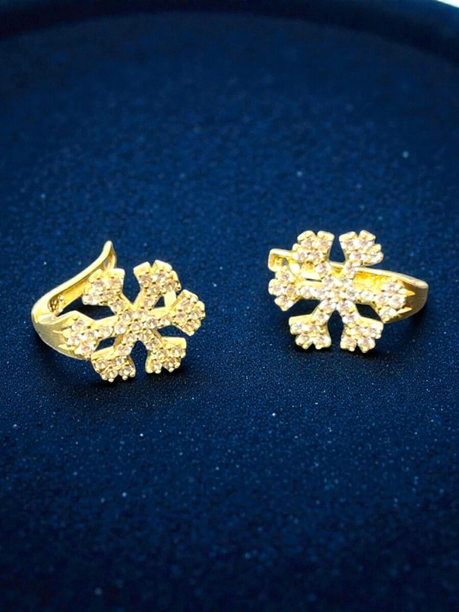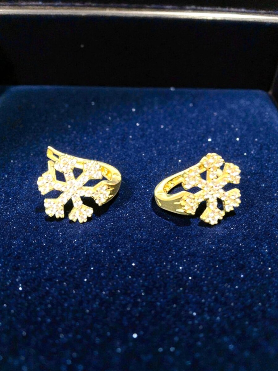 Kar Tanesi Model Taşlı Altın Küpe
