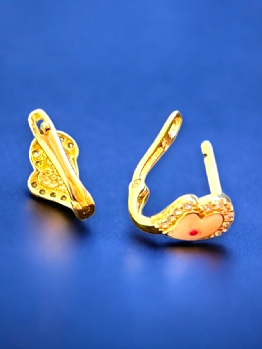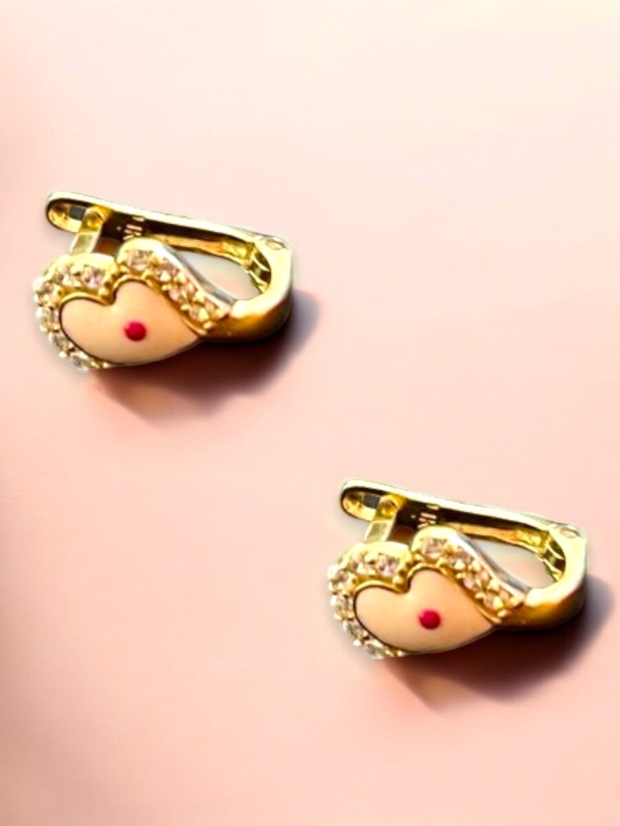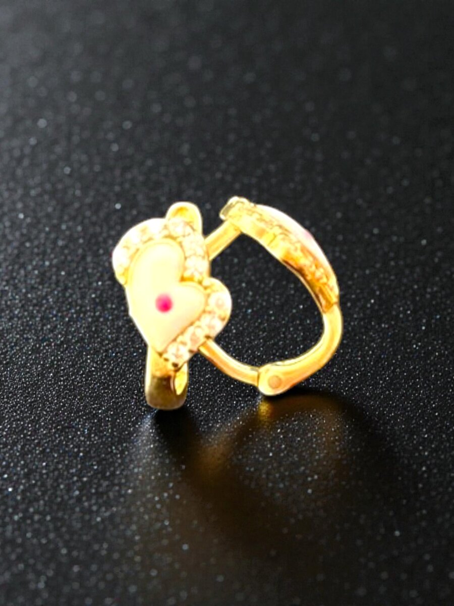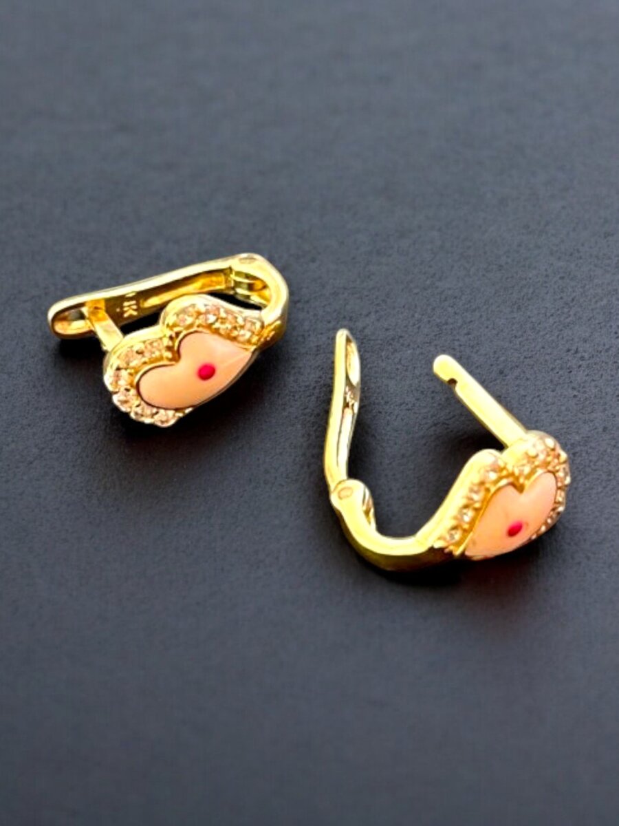 Taşlı Kalp Model Altın Çocuk Küpe