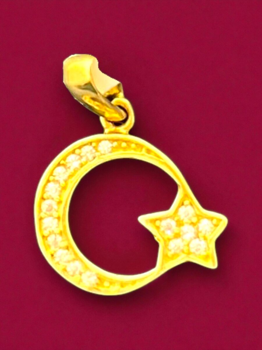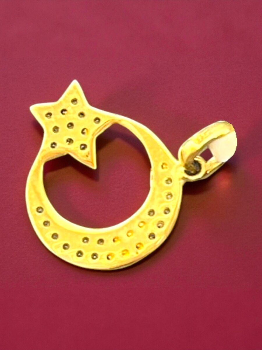 Taşlı Ay Yıldız Altın Uç