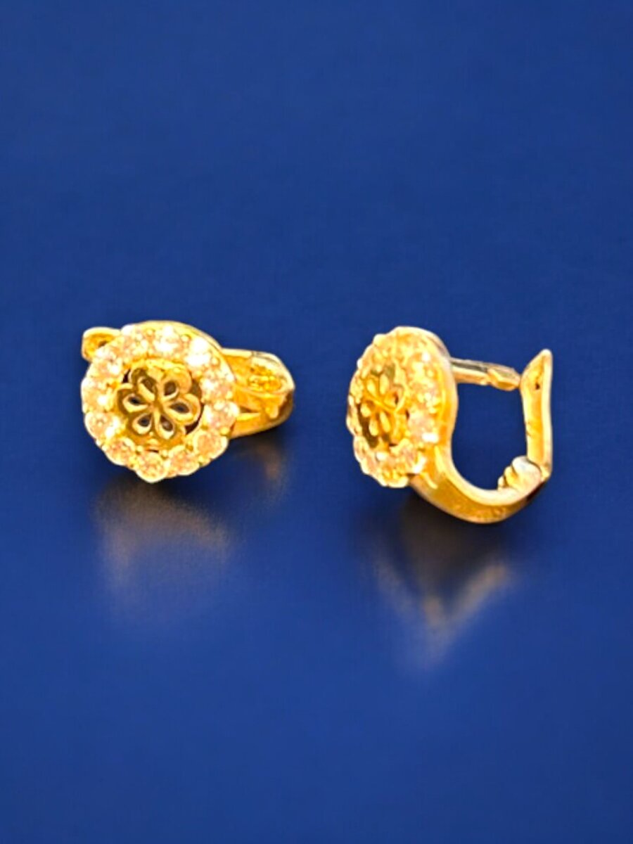 Taşlı Çiçek Model Altın Çocuk Küpe