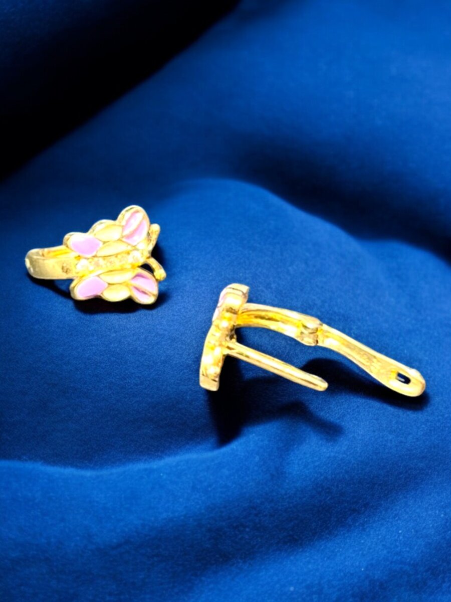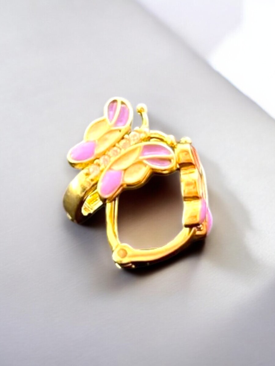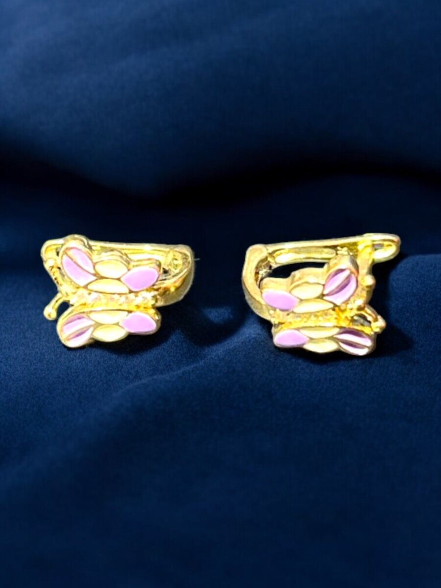 Taşlı Kelebek Model Altın Çocuk Küpe